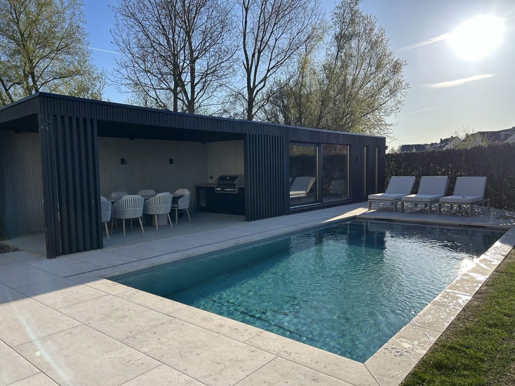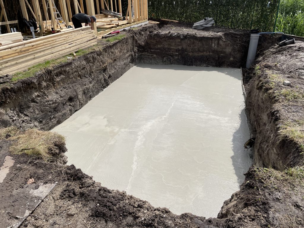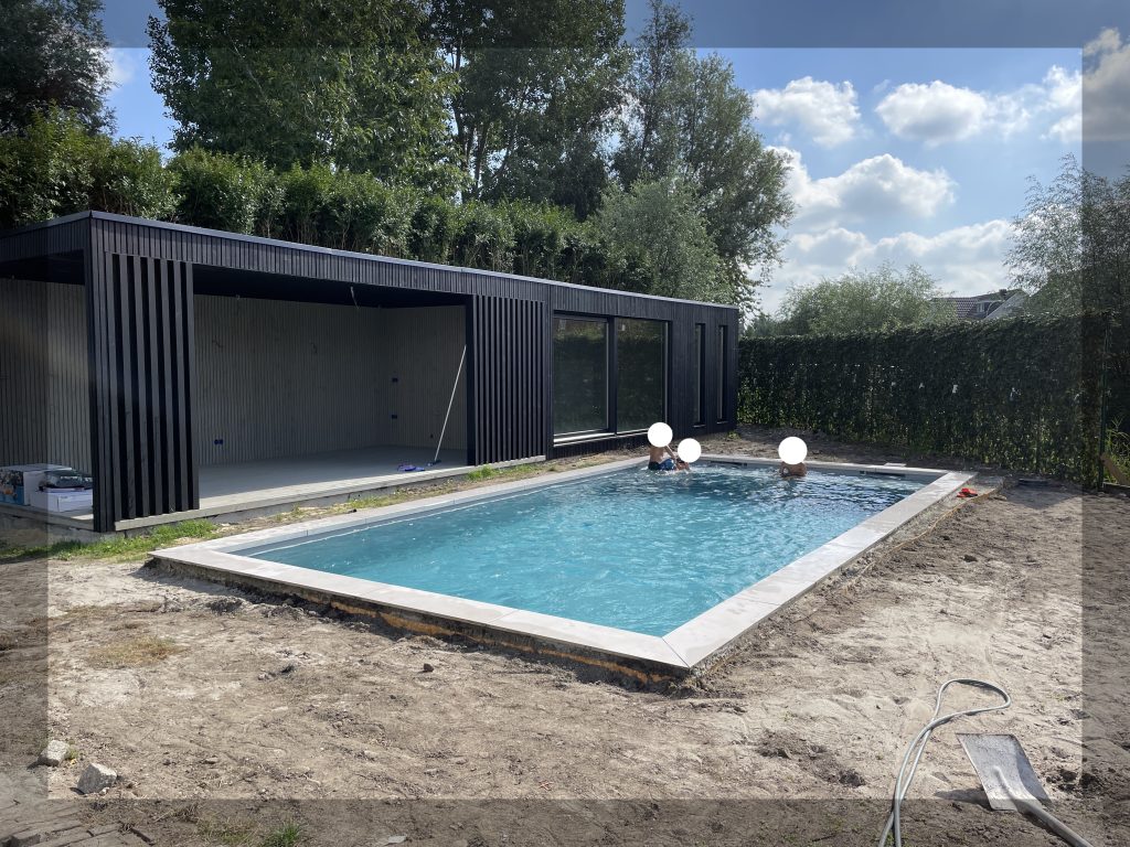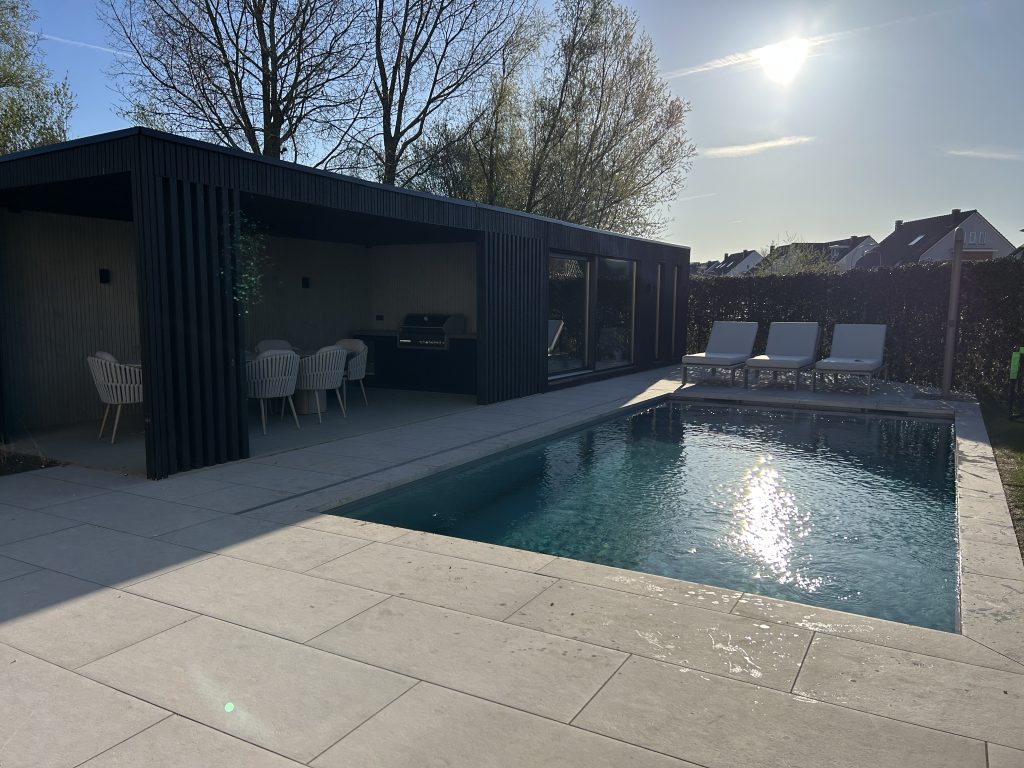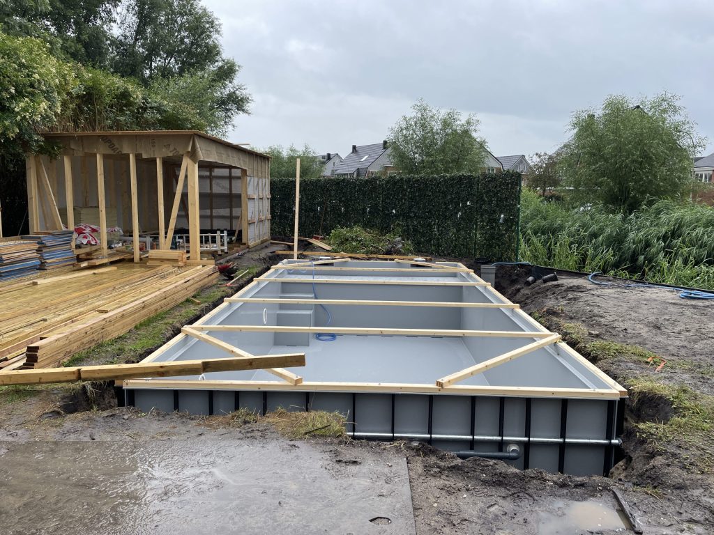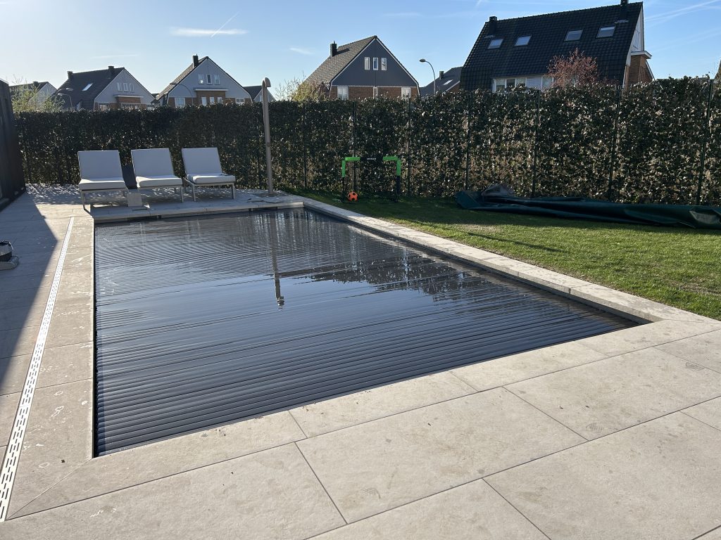HDPE rechte hoektrap met 3 treden, 70 cm breed, geplaatst tegen HDPE nis welke teven dient als 1e trede van de trap