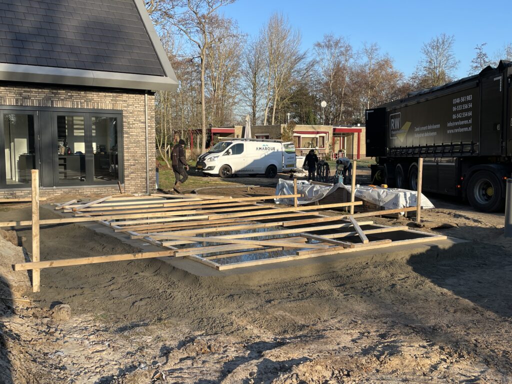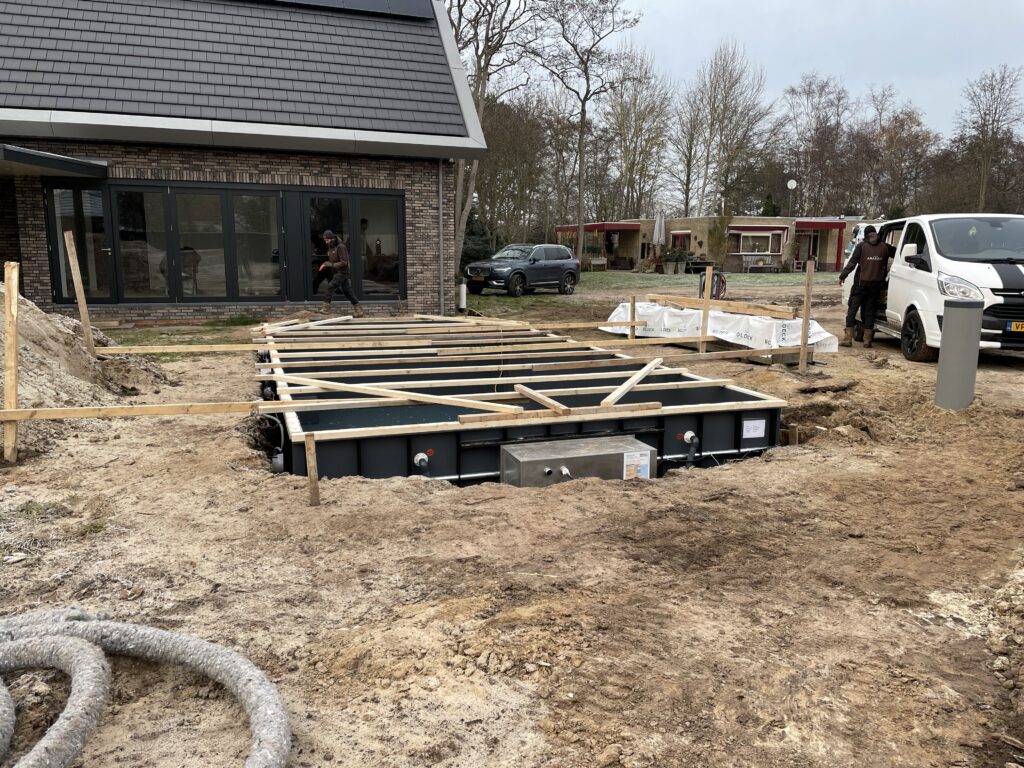 Bouwkundige rechte hoektrap met 3 treden, geplaatst tegen HDPE nis