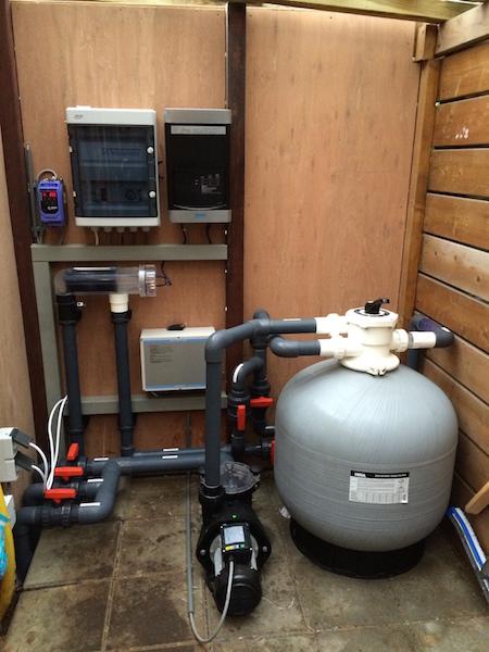 Zwembad wordt verwarmt middels een warmtepomp.