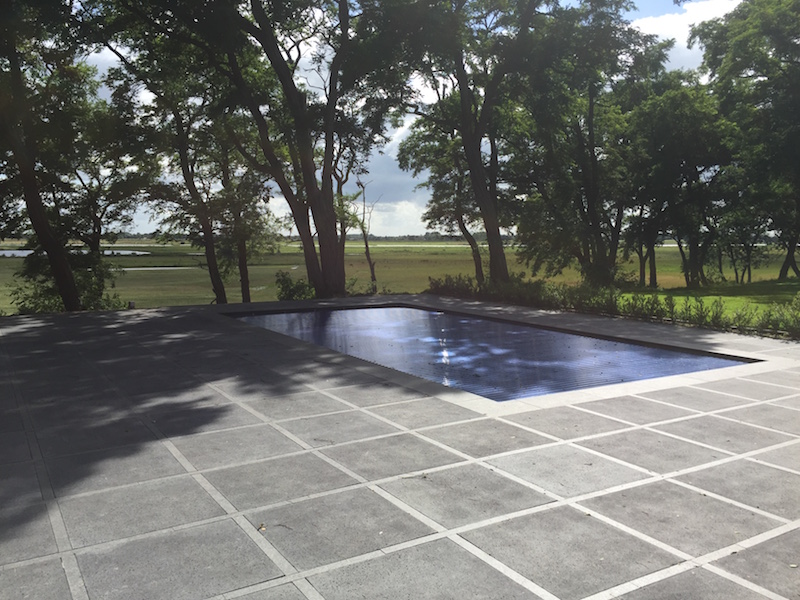 Polycarbonaat solar lamellenafdekking nabij de bodem van het bad.