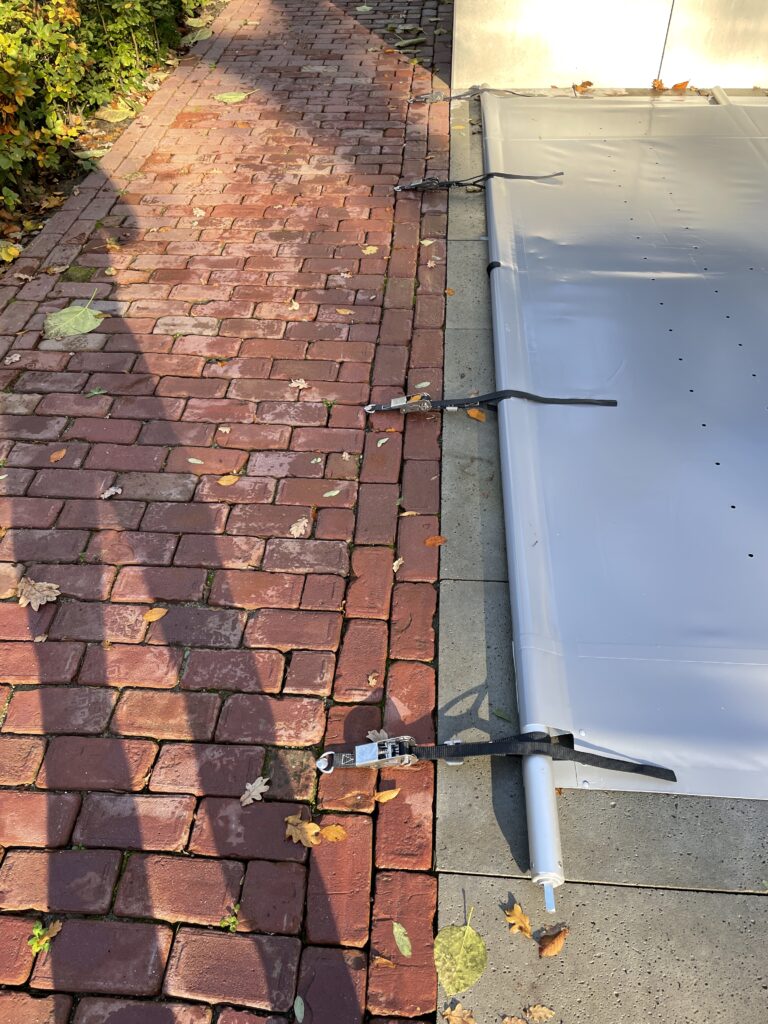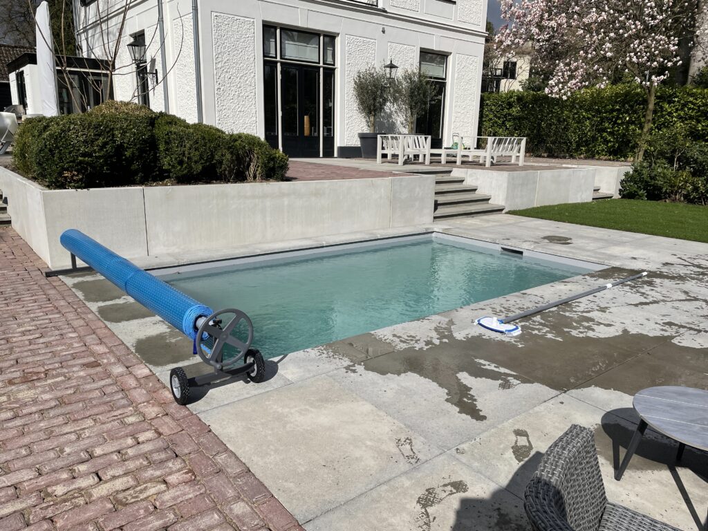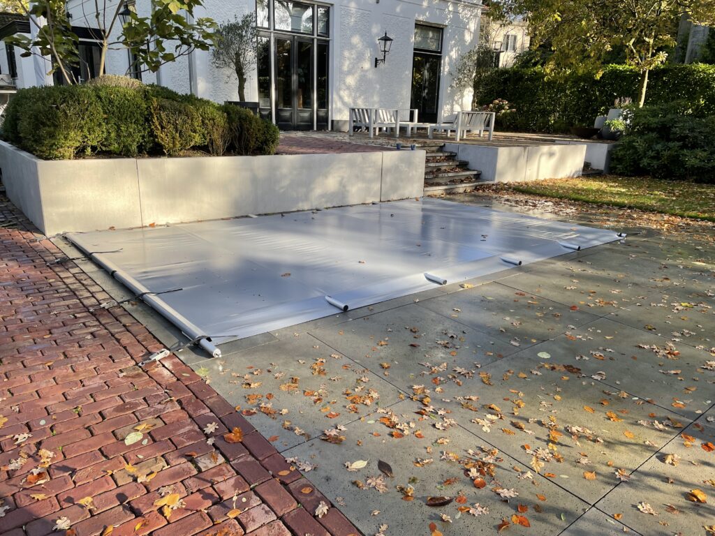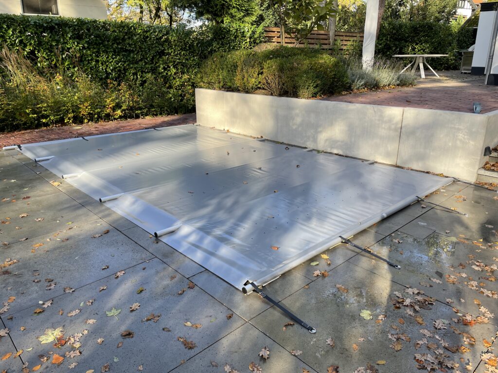 Blauwe noppendeken (afdekking) met verrijdbare handmatige oprolinrichting