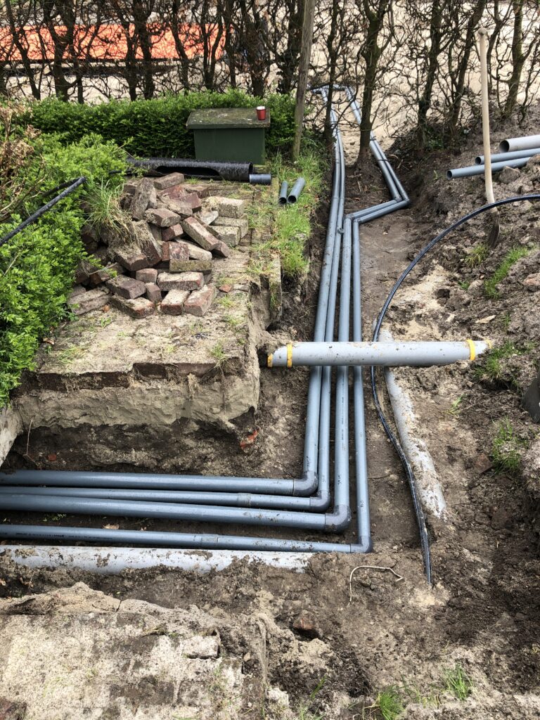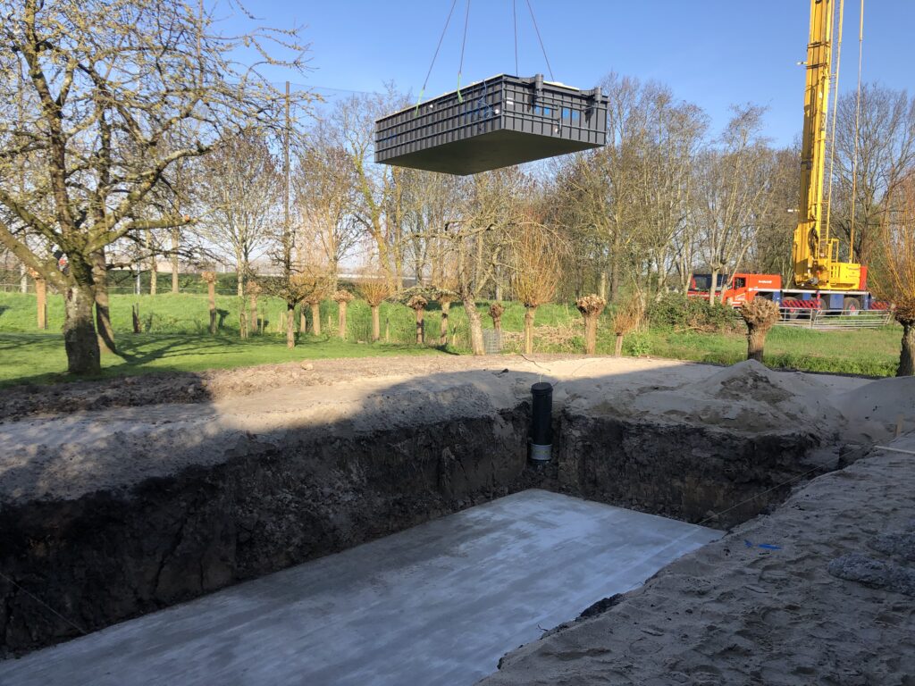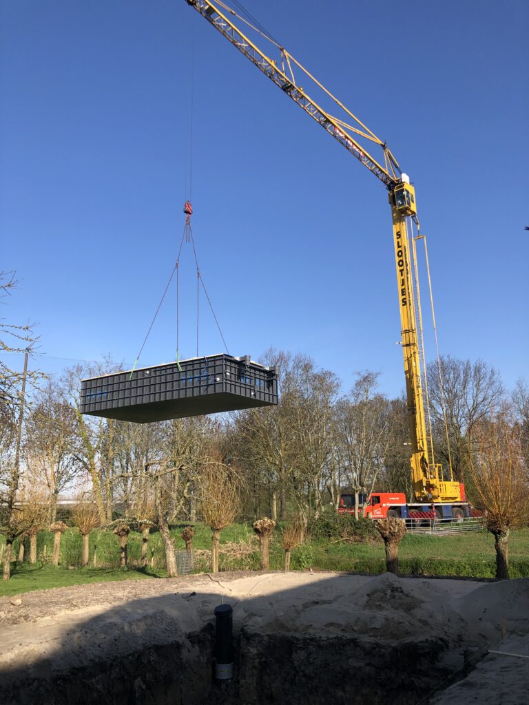 Bouwkundige rechte hoektrap met 3 treden, geplaatst tegen HDPE nis