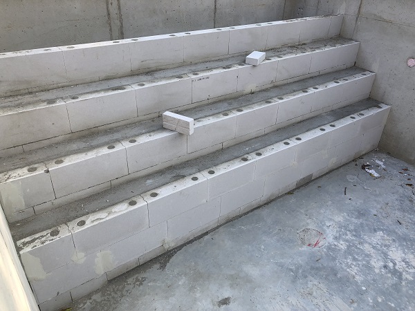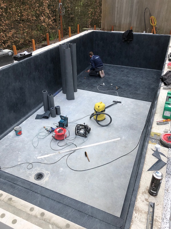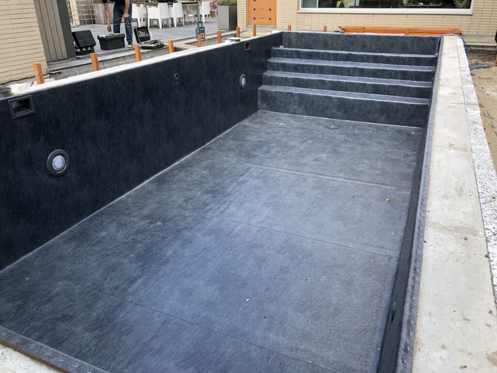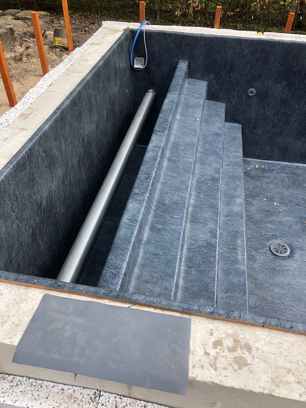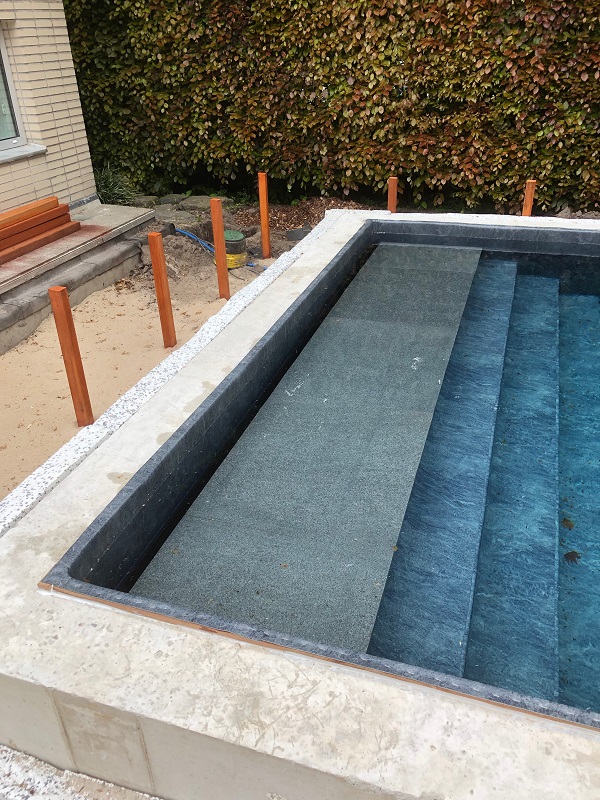 Het bad is voorzien van een bouwkundige trap met 3 treden over de volle breedte van het bad, geplaatst tegen de roldecknis/zitbank.