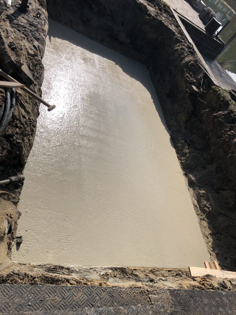 Nis t.b.v. lamellen afdekking, tevens 1e trede van de trap en zitbank