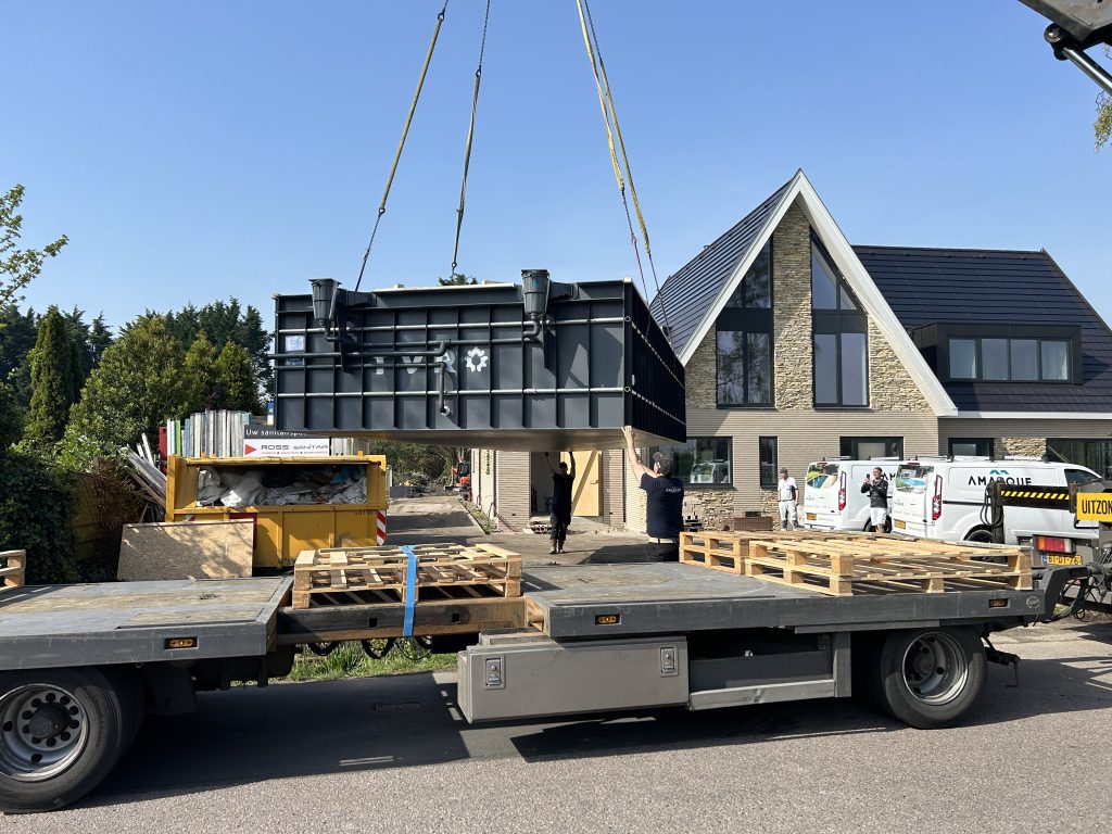 HDPE trap over de volle breedte met 3 treden, geplaatst tegen HDPE nis