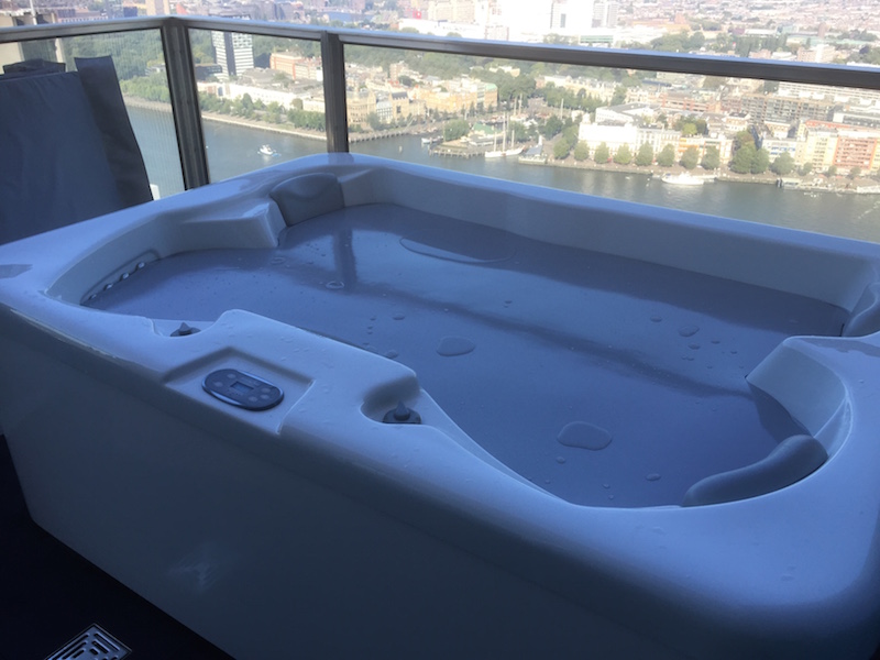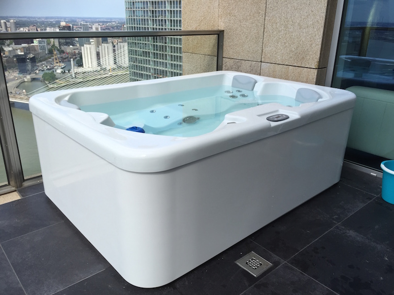 Customized d.m.v. een corian behuizing en LED verlichting onder de spa. Een uniek project op een unieke lokatie!
