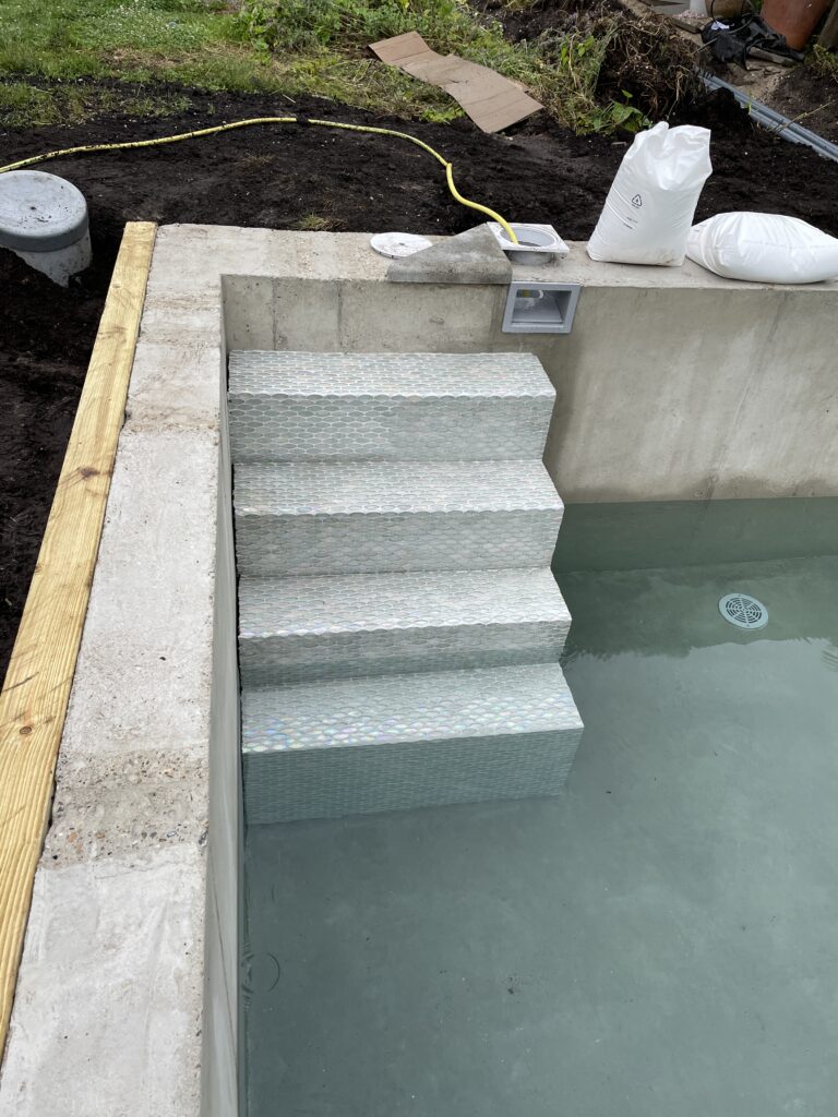 Bouwkundige recht hoektrap met 4 treden (bekleed met een mozaiektegel door de klant zelf)