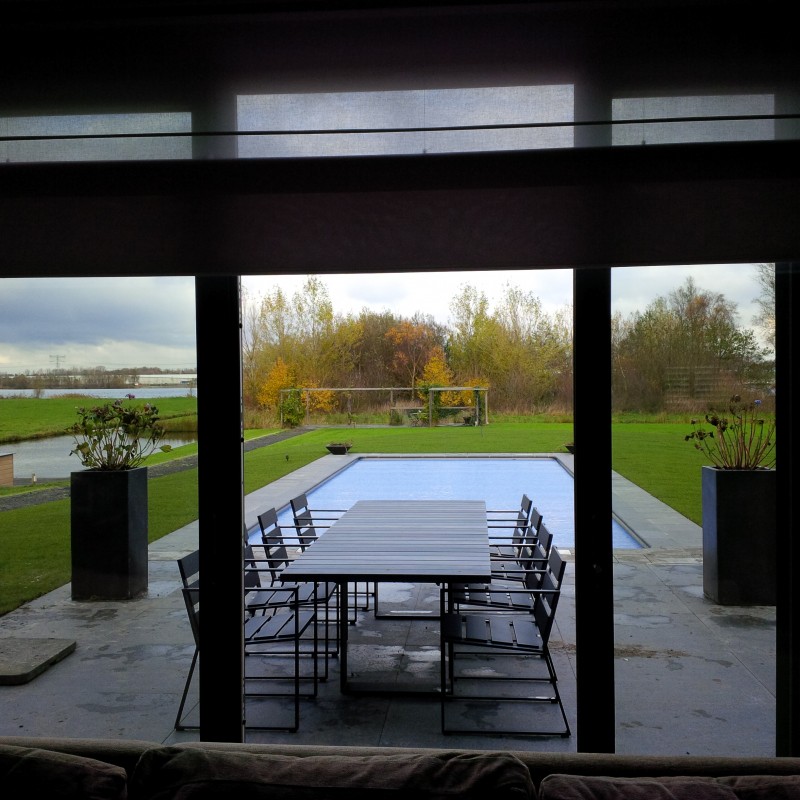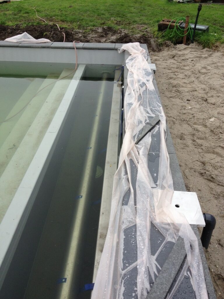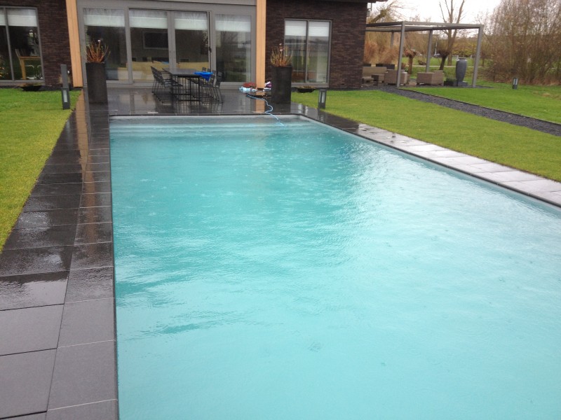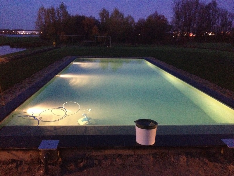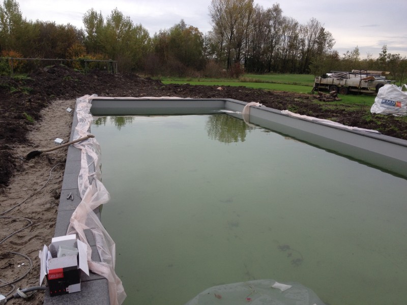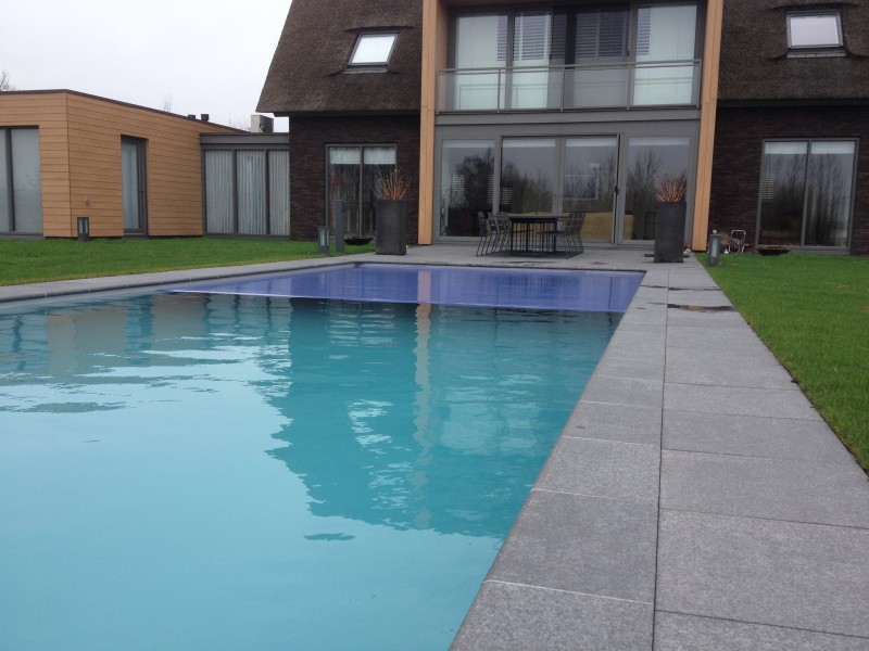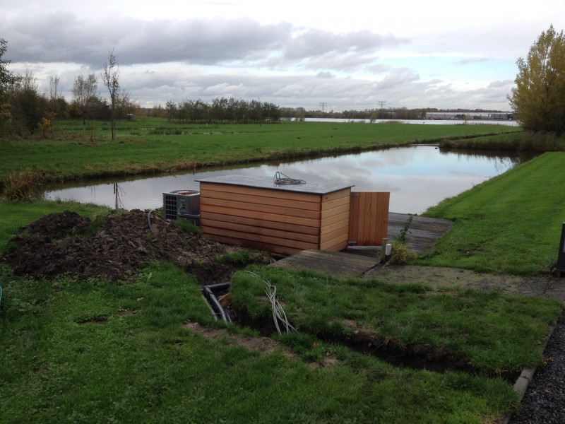Zwembad wordt verwarmt middels warmtepomp.