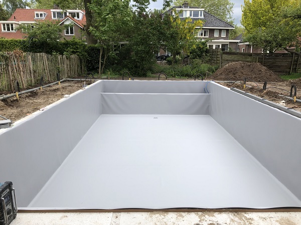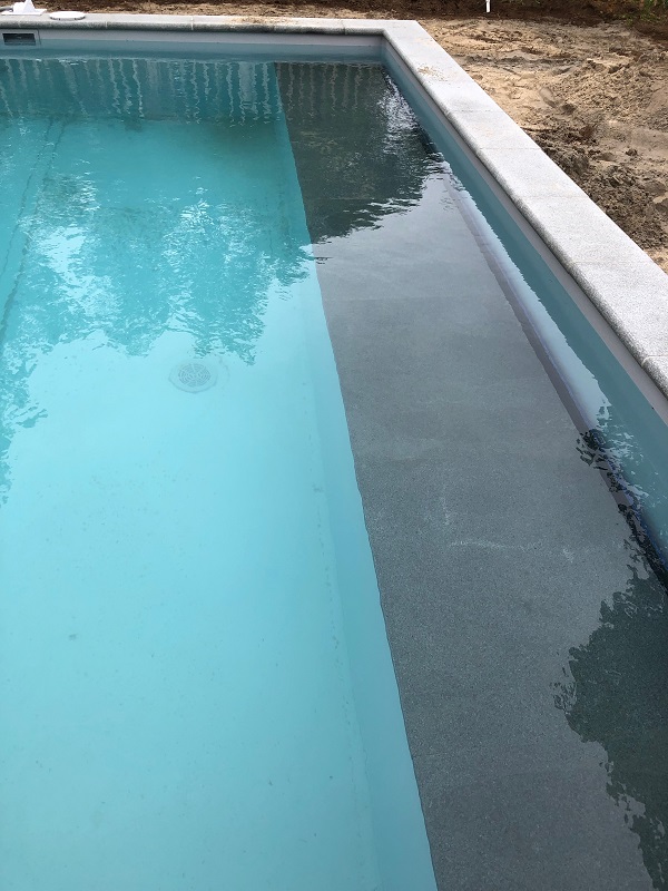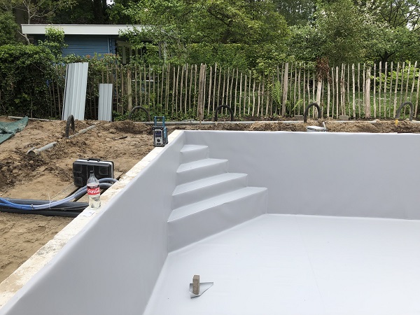 Het bad is voorzien van een bouwkundige hoektrap met 4 treden.